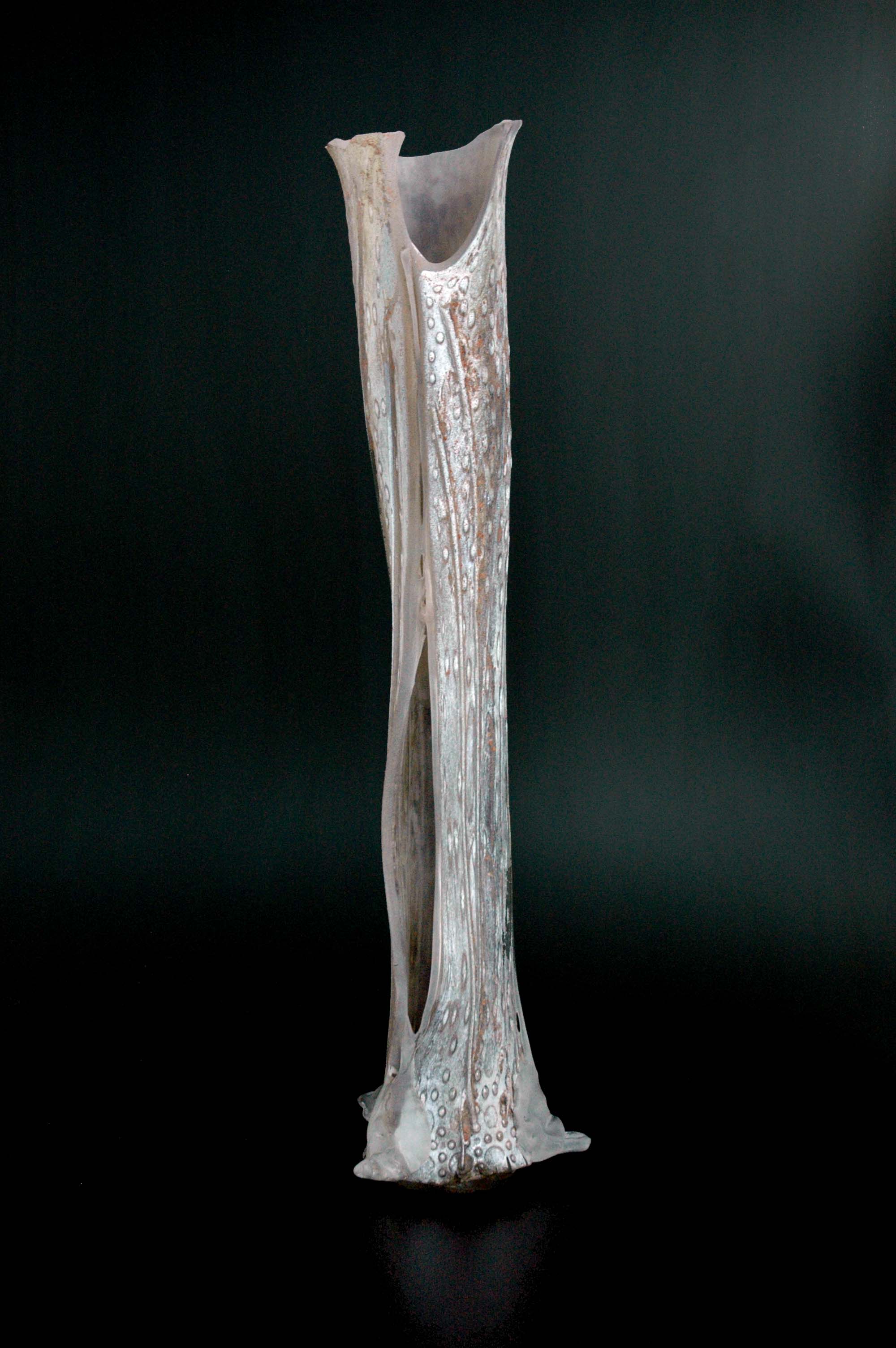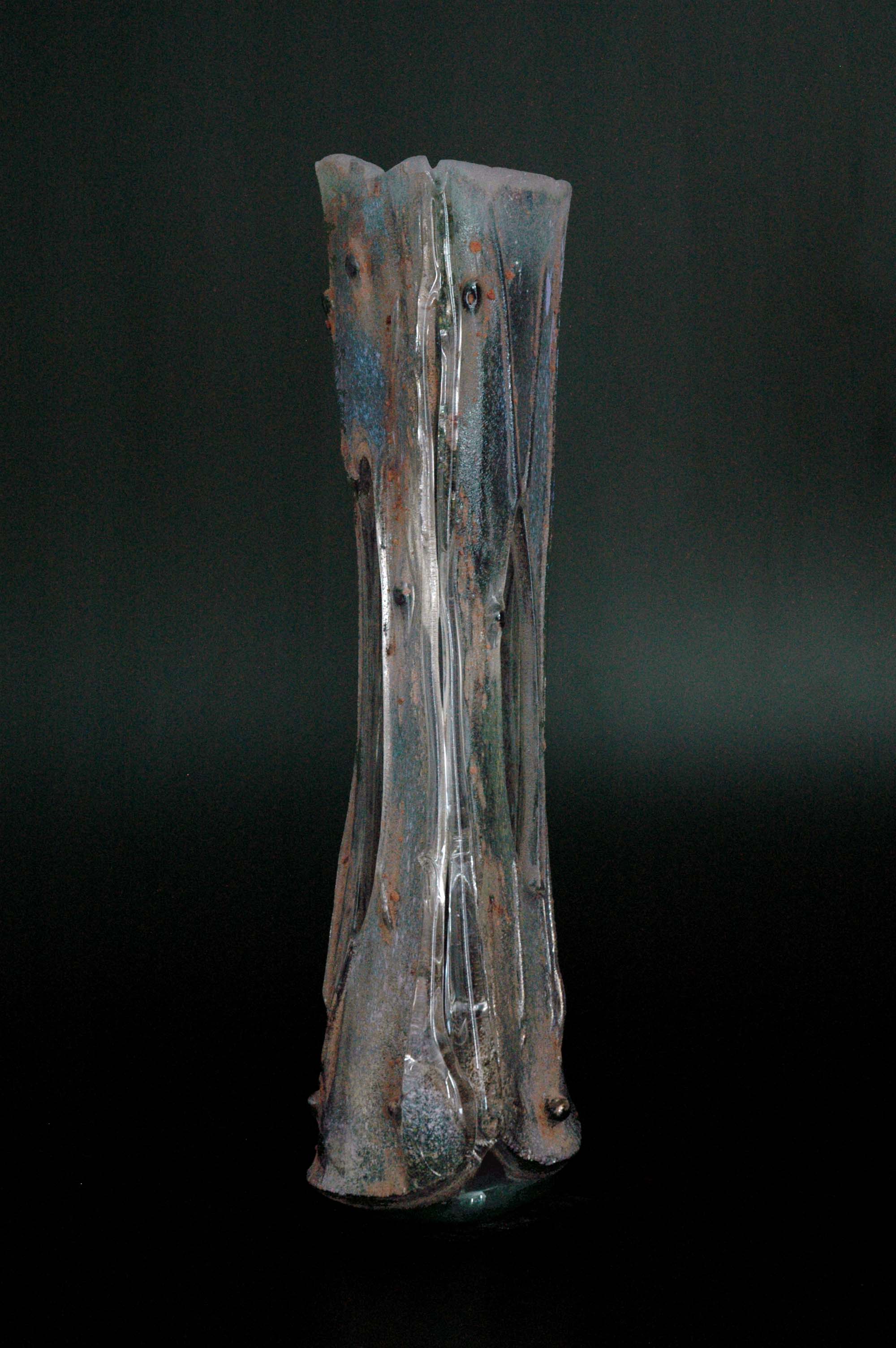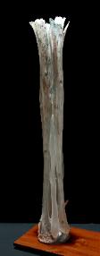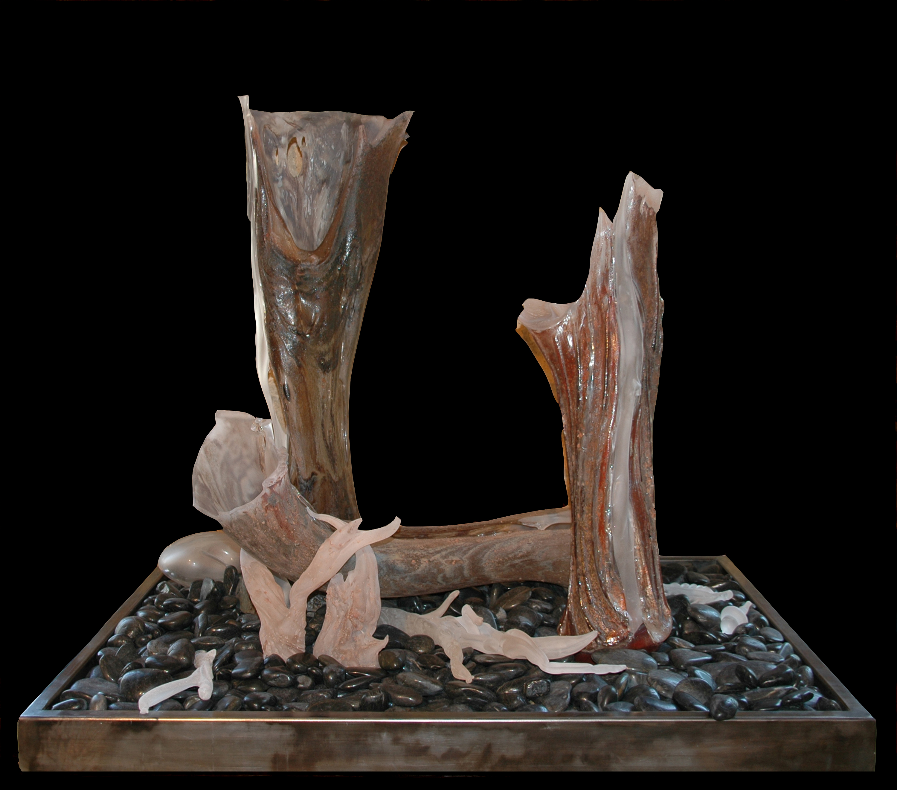 “The Tree series is inspired by and representative of the presence of our forests and the devastation that has occurred. Additions of clear/colored glass dripping overlays are a reminder of the sap or tears of destruction.” Ron |
