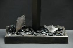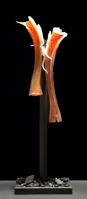 “The Tree series is inspired by and representative of the presence of our forests and the devastation that has occurred. Additions of clear/colored glass dripping overlays are a reminder of the sap or tears of destruction.” Ron |