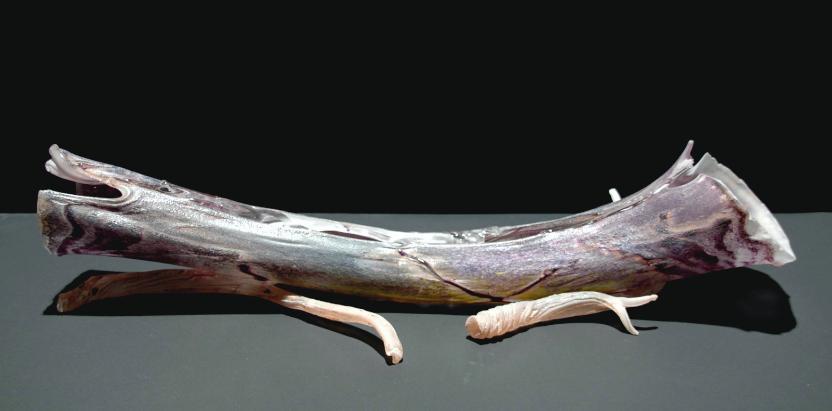 “The Tree series is inspired by and representative of the presence of our forests and the devastation that has occurred. Additions of clear/colored glass dripping overlays are a reminder of the sap or tears of destruction.” Ron |