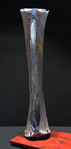 “The Tree series is inspired by and representative of the presence of our forests and the devastation that has occurred. Additions of clear/colored glass dripping overlays are a reminder of the sap or tears of destruction.” Ron |