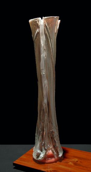 “The Tree series is inspired by and representative of the presence of our forests and the devastation that has occurred. Additions of clear/colored glass dripping overlays are a reminder of the sap or tears of destruction.” Ron |